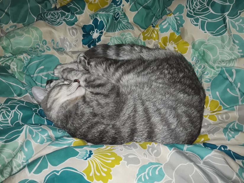 My husband brought her to me as I sat in the car anxiously waiting to meet her. He handed her to me through the window and I wrapped her up in a small blanket on my lap, holding her tight so she knew she was safe, she purred as if she knew she was ours. When we got her home she was treated for the fleas, worms and bathed. She didnt know how to use the litterbox but box trained quickly and now has no bad habits at all.